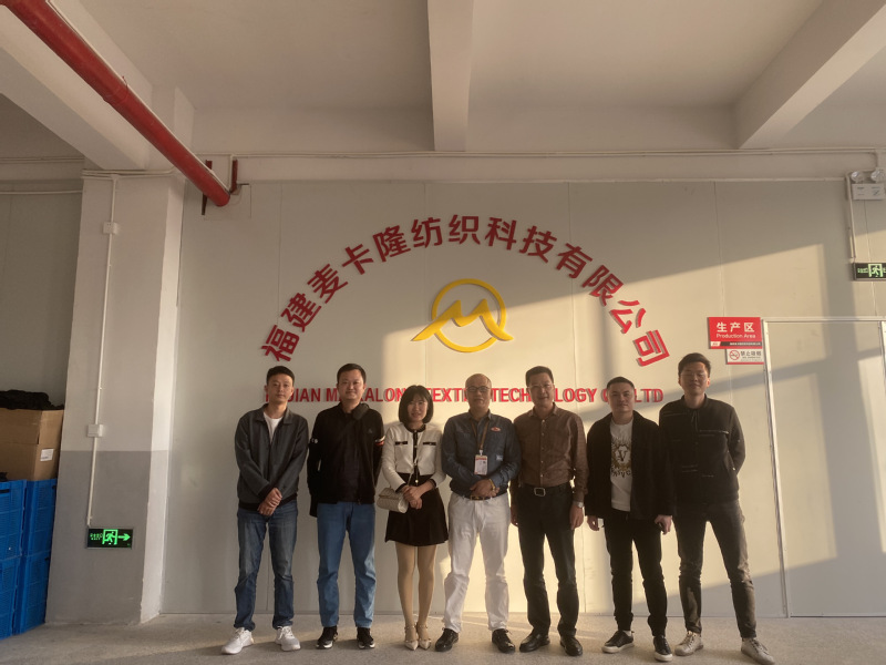 11月9日下午,学院党委书记张玉武,学工办主任聂莹,纺织工程教师张宏杰,辅导员程钟洛、陈灿辉一行应邀前往福建麦卡隆纺织科技有限公司召开产学研合作研讨,福建麦卡隆纺织科技有限公司董事长吴显祖热情接待并陪同参观研讨。