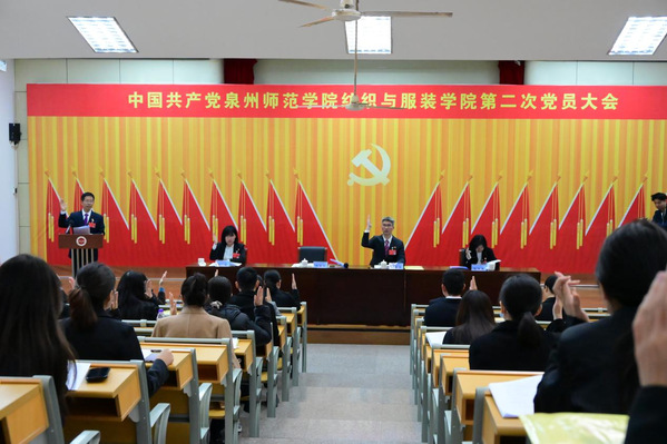 大会号召,全院师生党员高举习近平新时代中国特色社会主义思想伟大旗帜,认真贯彻落实党的二十大和二十届二中全会精神,迎难而上、逆风展翅,齐心协力、奋勇争先,以更宏伟的战略视野、更卓越的创新精神、更强烈的改革意识、更自觉的使命担当,凝神聚力、奋发有为,主动投身学院新一轮改革开展的浪潮中,为加快推进建设特色鲜明的一流应用型大学,建设特色鲜明的地方高水平纺织服装学院而努力奋斗!