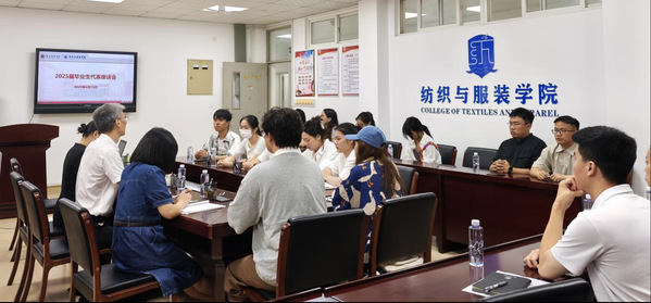 6月19日下午,纺织与服装学院召开2025届毕业生代表座谈会。学院党委书记黄国波、副院长(主持工作)崔丽娜、学工办主任聂莹、毕业班辅导员,研究生、本科生毕业生代表齐聚一堂,畅叙师生情谊,共话学院开展。座谈会由黄国波主持。