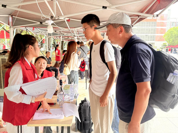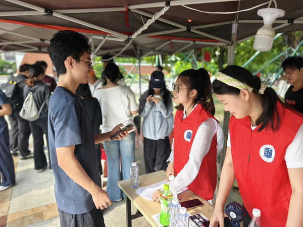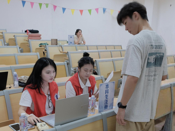 在荣助楼报到现场,“三办”工作人员、学生志愿者分工协作、密切配合,引导新生高效、便捷、有序地完成报到。
