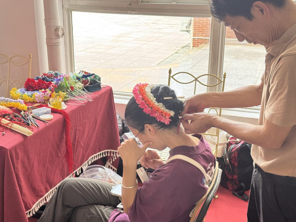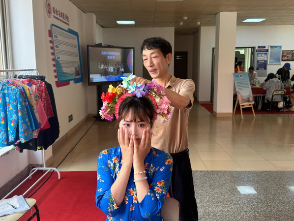 二是“簪花承韵,文化铸魂”。在非遗传承人黄晨师傅的指导下,新生们簪上美丽的鲜花、试穿蟳埔女传统服饰,亲身感受传统服饰文化的魅力与深厚底蕴。顺利获得触摸面料肌理、观察服饰演变,同学们不仅增进了对海丝文化的理解,更在潜移默化中完成了专业的初步启蒙。