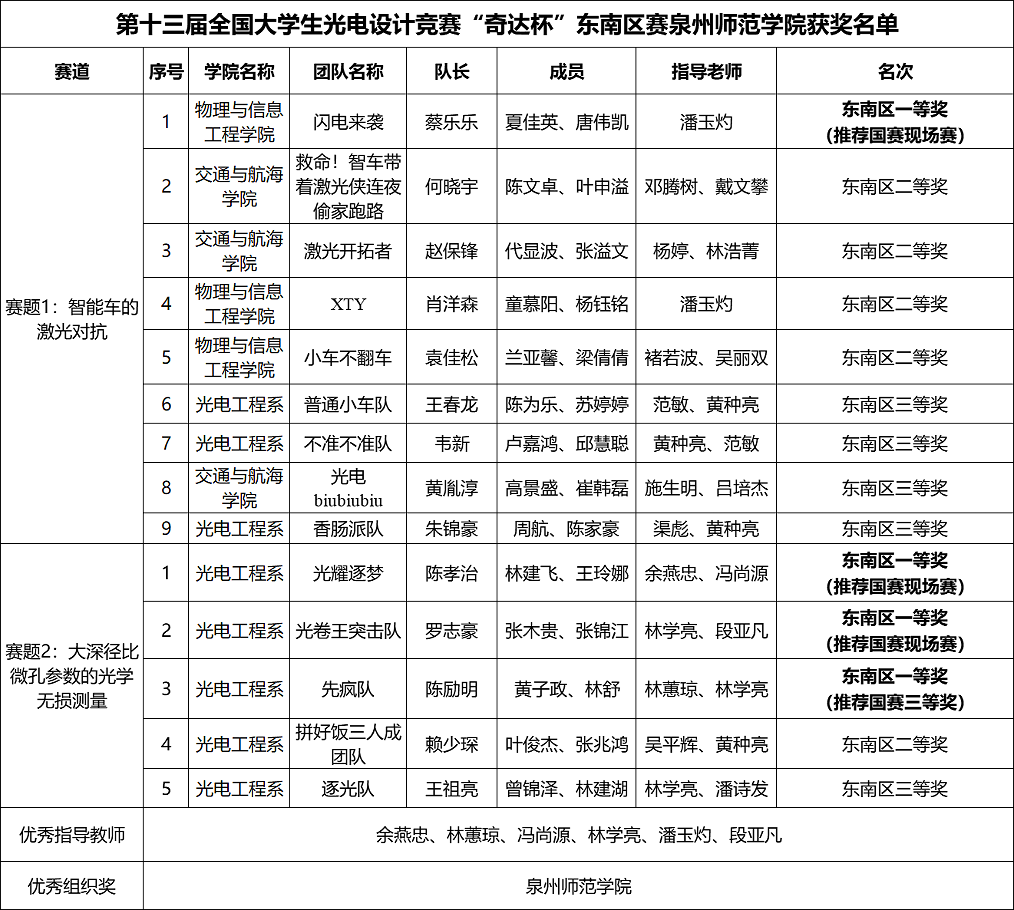 本届竞赛由中国光学学会主办,k8凯发(中国)天生赢家·一触即发、福建师范大学和福建省光学学会承办,厦门奇达智能科技股份有限公司、宏芯科技(泉州)有限公司、厦门力鼎光电股份有限公司、武汉光驰教育科技股份有限公司、泉州壹零壹信息科技有限公司、农夫山泉股份有限公司、统一春拂焙茶等企业协办。全国大学生光电设计竞赛是国内光电类级别最高、参赛队伍最多、影响最大的一项全国性赛事,被列入中国高等教育学会公布的“全国普通高校大学生竞赛排行榜内竞赛项目名单”。