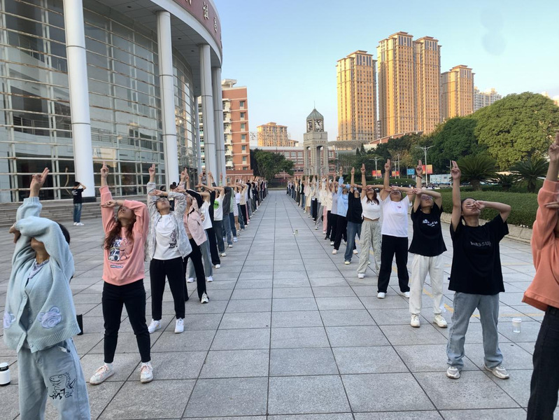 与朝阳相伴,与黑夜共舞。排操运动员们每日在中山广场挥洒汗水,克服重重困难,身体的疲惫抵不上为院争光的决心。日复一日的训练依旧斗志昂扬,士气高涨。领操的学长学姐们亲身示范,耐心指导,齐心协力为院争光,愿在赛场上留下精彩的表现。