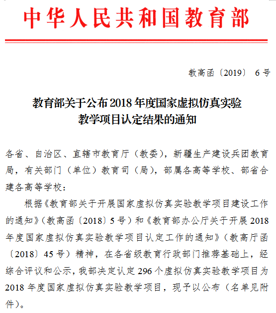 2018年度国家虚拟仿真实验教学项目公布
