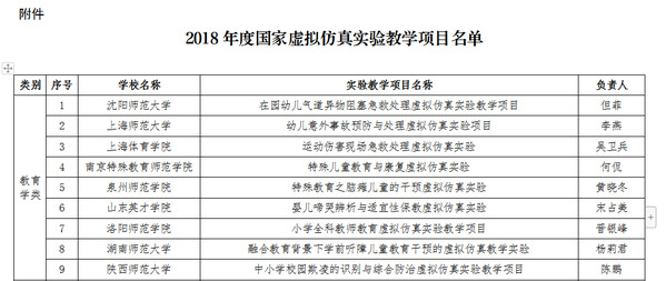 2018年度国家虚拟仿真实验教学项目教育学类名单