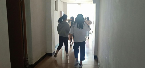 各宿舍学生按应急疏散预案的疏散线路进行快速撤离