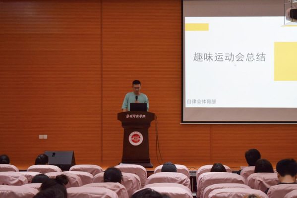 本次宿舍文化节由教育科学学学院自律会主办,自律会各分管部门承办。本次宿舍文化节活动共由“文明宿舍百科竞答”、“趣味运动会”、“文明宿舍评比”和“宿舍收纳装扮大赛”以及“宿舍logo创意大赛”五部分组成。闭幕式开始,各部门依次上台进行活动总结汇报;随后,各部门顺利获得视频和图片的方式,向观众展示了此次活动的精彩瞬间,以及获奖作品和宿舍风采;最后,主持人公布本次宿舍文化节获奖名单。张甲玉为获奖的学生代表颁奖并合影留念。