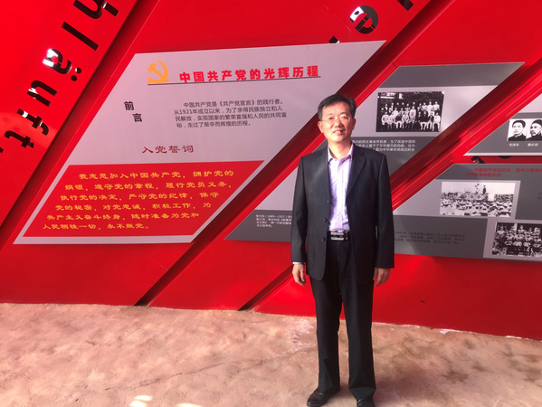 苏明强教授在南泥湾主题教育馆拍照留念