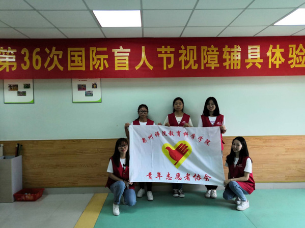 10月15日,“国际盲人节”当天,教育科学学院志愿者随相关负责人前往泉州市特殊教育学校协助市残联召开盲人辅具体验活动。