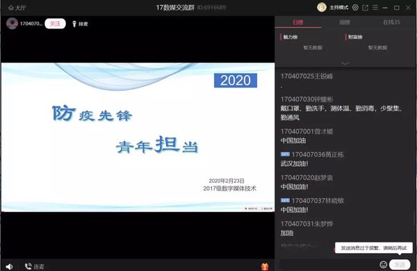 2017级数字媒体技术专业班级召开“防疫先锋 青年担当”主题班会