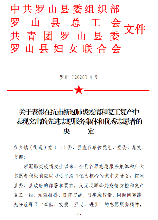 近期,为表彰先进,树立楷模,引导党员、团员持续投身服务人民群众,中共罗山县委组织部、罗山县总工会总工会、共青团罗山县委联合发文,对新冠肺炎疫情期间在罗山县基层抗疫一线表现、工作持续认真、踏实肯干的56名志愿者予以了表彰。教育科学学院优秀学生干部2016级数字媒体技术专业学生张翔同学名列其中。