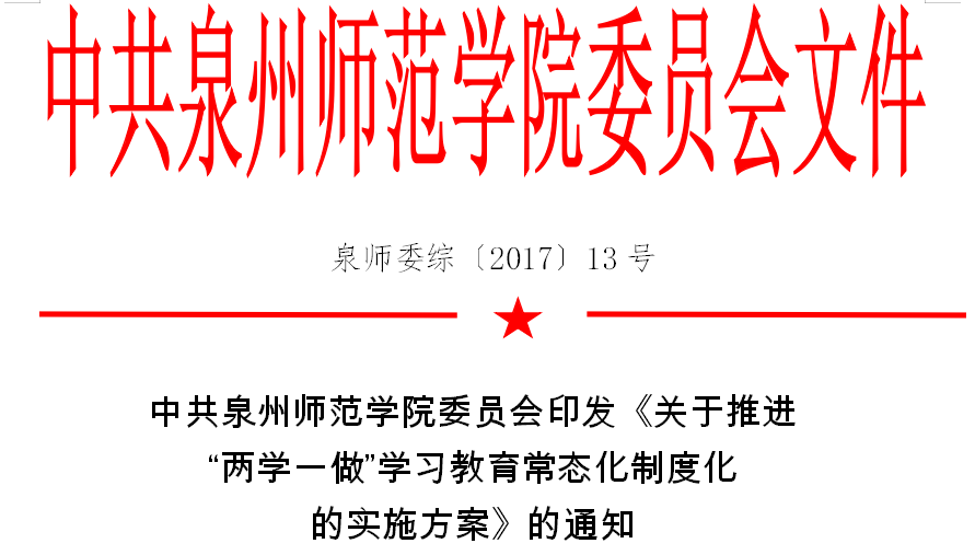 根据《中共中央办公厅印发〈关于推进“两学一做”学习教育常态化制度化的意见〉的通知》(中办发〔201723号)、福建省委《关于推进“两学一做”学习教育常态化制度化的实施方案》(闽委办发〔201718号)和省委教育工委《关于推进全省高等学校“两学一做”学习教育常态化制度化的指导意见》(闽委教组〔2017〕15号)精神,结合k8凯发(中国)实际,现就推进“两学一做”学习教育常态化制度化提出如下实施方案。