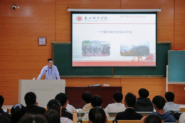为增强教育科学学院学生的国防意识和观念,激发同学们的爱国热情,教育科学学院于10月至11月在特教大楼组织召开四场国防教育主题班会,本次国防教育主题班会邀请泉州军转干范魏江、林时量、李利达、修春博做主讲人,2020级全体新生参加。