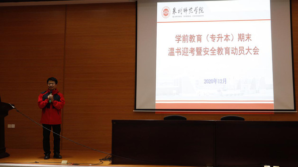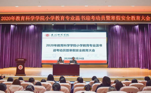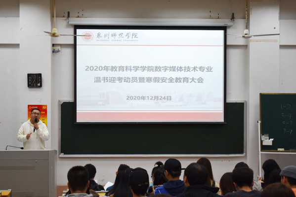 12月24日-28日,教育科学学院各专业分场次召开期末温书迎考动员暨寒假安全教育大会,学院领导、各专业主任、各专业辅导员出席,各专业全体学生参加会议。