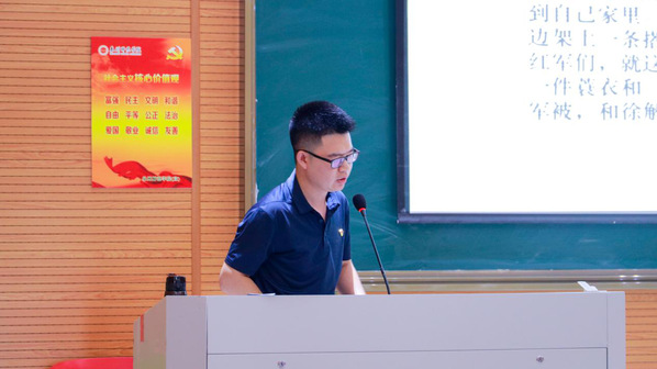 教育科学学院学生第五团支部书记许龙权为入党持续分子培训班学员上党课