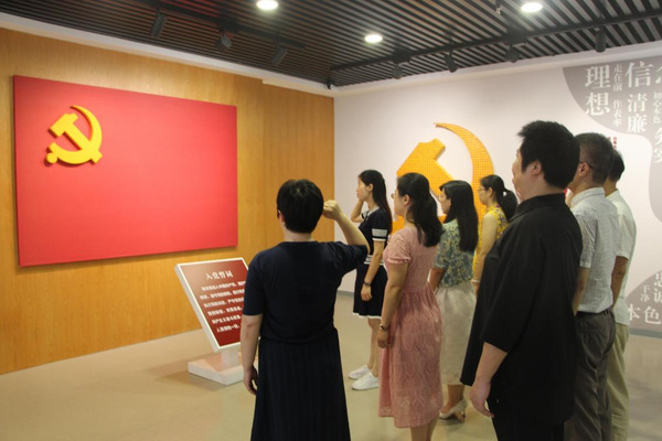 在讲解员的引导下,党员们边听讲解边观看图片、场景、视频影像资料等,不时顺利获得现场互动设备参与学习体验,全方面、多形式地学习分析机关党建的开展历程、机关党建的系统工程,学习了泉州市“三合一”机关党建工作体系,“1263”机制以及“5433”工作法,党员同志们深受启发,随后党员同志们面对党旗,重温入党誓词,并庄重承诺:不忘初心、牢记使命。