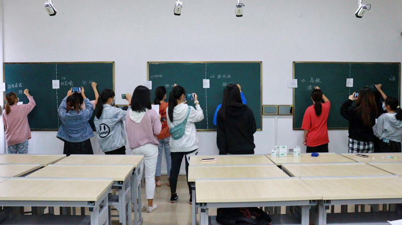 本次比赛共92名学生参与,所有参赛学生按照六人一组进行分组后,在限定时间内独立完成一首古诗书写,由赛场工作人员进行录像及计时。比赛过程中,每个选手都努力把握一笔一划的书写力道,凝神聚气、认真专注地完成古诗书写,凭借稳定的参赛状态展现了扎实的基本功,力求将每个汉字书写得端正大方、舒展有力,将自身水平发挥到极致。随着时间的流逝,比赛接近尾声,参赛选手们用精湛的书写技能现了一场精彩的粉笔字比拼盛宴,所书写的粉笔字笔风各具特色,有的遒劲刚毅,有的飘逸舒展。整个比赛场面紧张、有序,氛围浓厚。