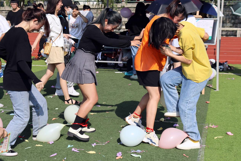 本次比赛共设置了123木头人、单手颠乒乓球、直线运球等十二个休闲娱乐性质的小游戏供同学们自由选择参与。与传统体育竞技不同,趣味运动会将趣味、娱乐和运动相结合,设置项目着重鼓励同学们动起来以及团队协作,充分发扬团体集体精神,考验了学生之间的合作能力和协调能力。田径操场上各个游戏项现在人头攒动,参赛学生们个个精神抖擞,奔走在不同的项目场地。同时,各部门工作人员持续关注比赛进程,记录下各个精彩的瞬间。