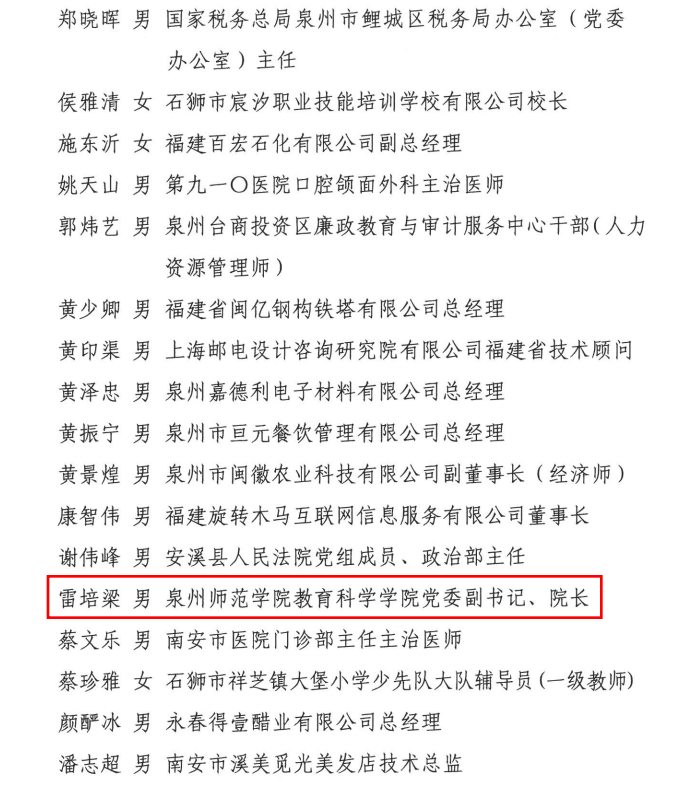 【争优 争先 争效】喜讯:我院院长雷培梁荣获第十六届“泉州青年五四奖章”