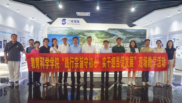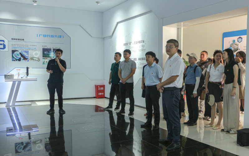在泉州三安半导体科技有限公司,党员们顺利获得走访泉州芯谷南安分园区,观看展示品、宣传片,现场研讨等方式,深入分析项目概况、未来开展等情况,分析地方企业奋力推进高质量开展的改革举措。企业的创新活力、干事激情和工匠精神,感染着每一位党员干部,激励党员干部们挺膺担当,坚持学思用贯通、知信行统一,奋力开创高质量开展新局面。