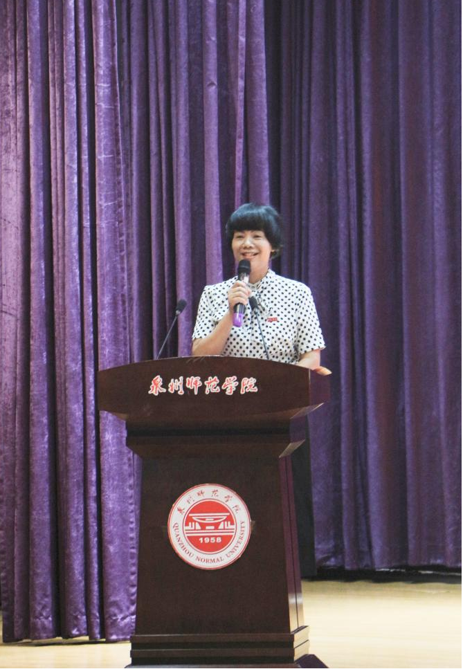 教师代表、正高级教师、福建省特级教师、学前教育系刘雪芬结合热播电视剧《人世间》,勉励新生在学习上做勤奋刻苦的周秉义,在生活上做坚强乐观的郑娟,在交往上做坦诚热情的周秉昆,努力提升自身的学习和工作能力,为成为一名“四有”教师实行知识和能力的储备。