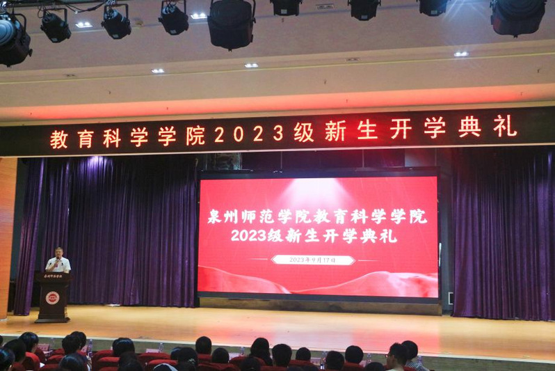 时维九月,序数三秋。教育科学学院迎来了428名本科新生与15名研究生,9月17日早上9点,教育科学学院2023级新生开学典礼在特教大楼一楼学术报告厅举行,院长雷培梁、院党委书记陈一祥、院党委副书记兼纪委书记刘宗安、副院长黄晓冬、副院长邵华、各学系主任、行政科室负责人、全体辅导员出席了开学典礼,典礼由院党委书记陈一祥主持。