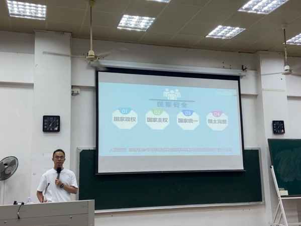 团委委员黄鲤生从“国内外形势及其热点”、“维护国家安全稳定”等方面,教育引导教育科学学院青年持续关注时事政治,更好地分析国内外的政治形势,增强青年学子维护国家安全的责任感、义务感和荣誉感。