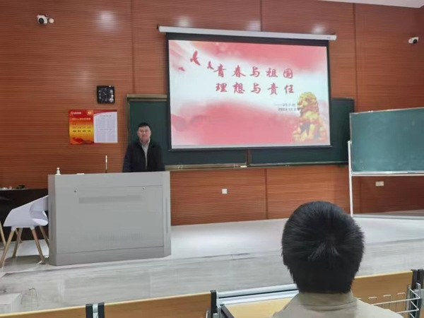 团委委员杨涛以青春与祖国为内容,勉励青年学子把自己的理想同祖国的前途、把自己的人生同民族的命运紧密联系,为实现中华民族伟大复兴而不懈奋斗。