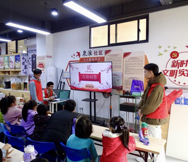 接着,教育科学学院志愿服务队成员组织展开了一场以“清廉”为主题的有奖诗词争霸赛,用古诗词句带领小朋友们深入浅出地感受古代人民的忠义气节。活动现场,小朋友们跃跃欲试、应答自如,展现出深厚的诗词积累。