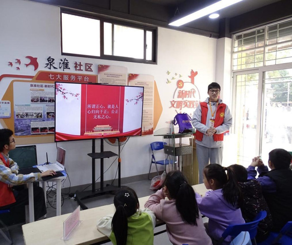 为加强新时代廉洁文化建设,培育清正廉洁的价值导向,进一步倡导廉洁文化,引导社区儿童建立正确的廉洁价值观。2023年12月2日上午,教育科学学院“润育青衿”志愿服务队携手泉淮“党建+”邻里中心、泉淮社区新时代文明实践站召开以“存正心、守正道、养正气”为主题的少儿公益课堂。