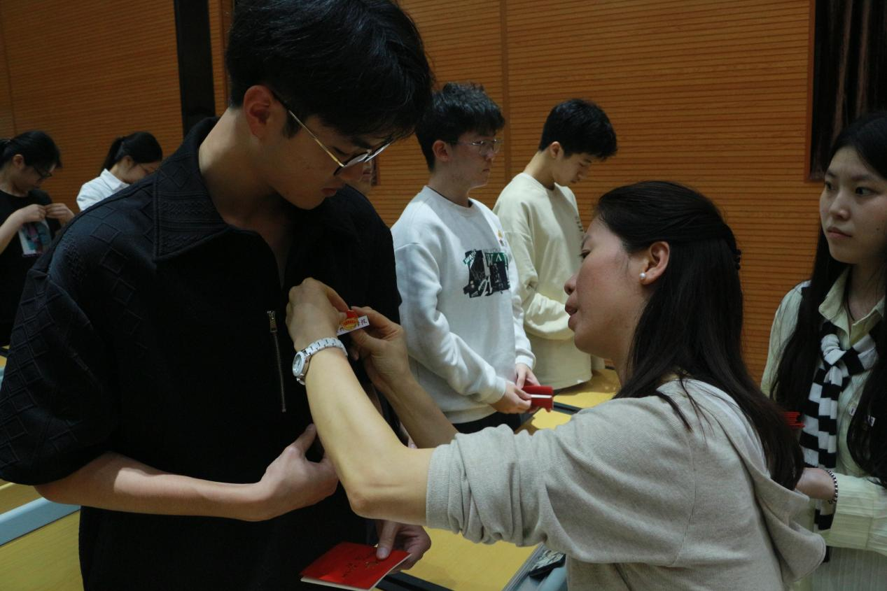 仪式在嘹亮的国歌声中拉开帷幕。院团委书记林翠玲、副书记(学生)马蓝馨为新团员们佩戴团徽,颁发团章。“我志愿加入中国共产主义青年团……”在林翠玲书记的带领下,33名新开展团员举起右拳,面向团旗庄严宣誓,字字铿锵,掷地有声,饱含着热情与自豪,表达了团员们对共青团组织的无限向往和为团组织增光添彩的豪迈激情。