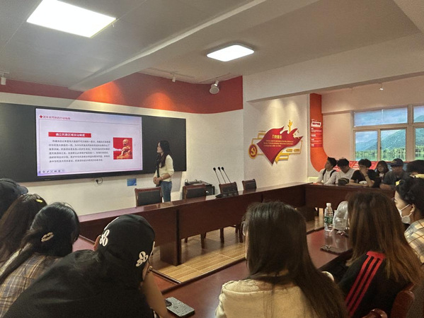 活动伊始,白玛拉珍同学围绕“中华民族共同体的内涵”“筑牢共同体的行动指南”“铸牢中华民族共同体意识”三个板块展开宣讲,她用清晰的讲解和丰富的图文,让在场的同学们对中华民族共同体有了更深刻的理解。