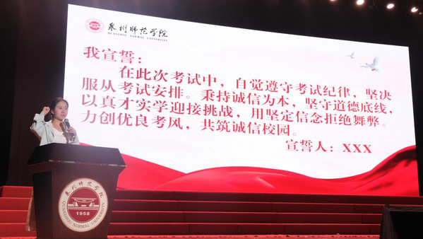 随后,在学生会执行主席郭宇清同学的带领下,全体学生进行了诚信考试集体宣誓,表达了对诚信考试的坚定承诺。