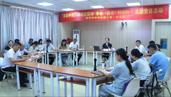 在随后的“落实中央八项规定精神 争做‘四有’好老师”主题党日活动中,全体党员共同学习《党的十八大以来深入贯彻中央八项规定精神的成效和经验》,集体观看警示教育片。党员们立足实际,围绕“如何将作风建设转化为育人实效”展开热议,现场气氛活跃。陈秋燕对本次主题党日活动予以充分肯定,她勉励党员们要深入贯彻中央八项规定精神学习教育,持续加强作风建设,牢记为党育人、为国育才使命,争做“四有”好老师。