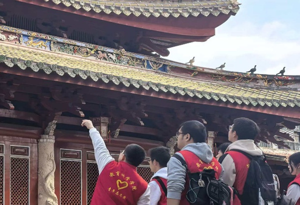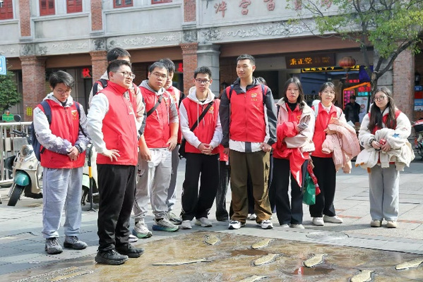 为触摸历史脉络、感受文化魅力,实践队走进泉州文化地标,开启沉浸式研学之旅。在泉州府文庙及学宫,队员们详解南宋始建、多朝重修的历史,解读“棂星门”“泮桥七十二石板”背后的教育典故,宋代浮雕盘龙金柱、雍正御笔匾额与祭孔礼器,直观感受东南地区最大文庙建筑群的文化厚度;漫步金鱼巷,铜制金鱼地雕、“出砖入石”的闽南古厝与现代业态相映成趣,队员们追溯巷名由来,见证“文保+生活”的融合魅力。在泉州海外交通史博物馆,从南朝起源到宋朝鼎盛,讲解的队员娓娓道来泉州作为“东方第一大港”的海丝传奇,《刺桐梦华图》中的港城盛景、唐宋诗城砖、祈风石刻等展品,让大家深刻领略海上丝绸之路的贸易枢纽魅力与多元文化交融的底蕴。