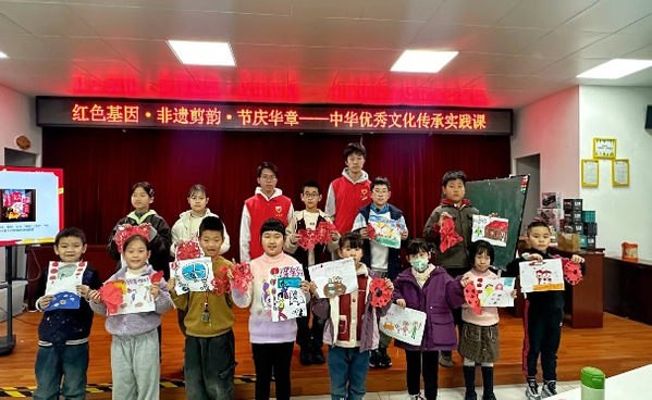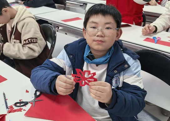 为激活青少年文化认同、延续传统文脉,实践队开设“民俗互动+非遗体验”双重课程。在“玩转民俗”环节,顺利获得“节日猜猜乐”互动游戏,引导孩子们抢答春节贴春联、端午节赛龙舟、中秋节赏月等传统习俗,感受中华民俗的独特魅力;随后召开“书法吧唧制作”活动,从书法小圆片创作、粘贴到别针固定,一步步指导孩子们完成专属文创作品,笔墨书香间浸润传统文化。非遗剪纸课堂上,队员们先讲述抗日小英雄雨来的勇敢事迹,让爱国坚韧的品质引发孩子共鸣,再详解剪纸的历史渊源、文化寓意与实操技巧,针对不同年龄段孩子进行个性化指导,孩子们手持剪刀与红纸,专注勾勒裁剪,圆点纹、祥云纹、“福”字等精美图案陆续成型,在动手实践中感受非遗技艺的独特韵味。