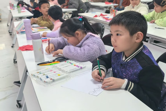 为激发儿童科学探索热情、培养创新思维与动手能力,实践队以科技元素为切入点,召开“巧制马年日历”主题课堂。队员们结合图文案例,生动讲解飞船、火箭等科技产物与新时代科技开展成果,随后指导孩子们动手创作——从勾勒马、红包、烟花等吉祥元素,到书写“马年快乐”艺术字,再到精准绘制1-6月日期,在裁剪、涂色、拼接的全过程中,孩子们尽情发挥想象力,既锻炼了动手能力,又在心中播下了热爱科学、勇于创新的种子。