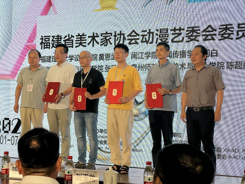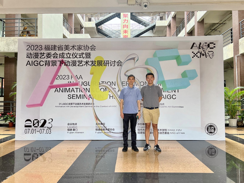 2023年7月2日,福建省美术家协会动漫艺委会创建仪式暨AIGC背景下动漫艺术开展研讨会在福州大学厦门工艺美术学院召开。我院副院长陈超淼,教师蔡希阳受邀参加,陈超淼副教授被聘为福建省美术家协会动漫艺委会第一届委员会委员。