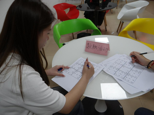 本次比赛题目设置6宫标准数独、9宫标准数独、6宫陆续在数独、7宫不规则数独、9宫乘积数独等不同类型,涵盖知识范围广、理念新,符合数学思维的逻辑性、推理性及大学生的知识特征。活动伊始,吸引不少数独爱好者前来参加。同学们三三两两成群围坐,他们配合默契、分工明确、讨论持续,从解题速度、解题技巧、合作精神几方面充分展示了我院学子的能力和实力。