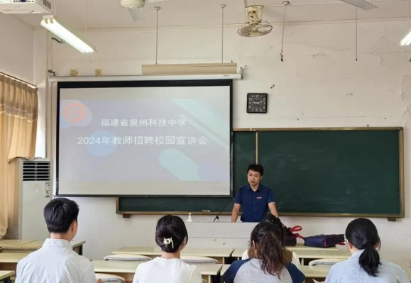 泉州科技中学办公室主任冯季从学校成就、职称评聘制度、治学执教环境、职业成才之路、薪资待遇水平、岗位职责要求等方面进行宣讲,并对毕业生的疑问一一解答。据悉,泉州科技中学是一所独具特色的民办完全中学,现为全国教育科研先进单位、全国民办学校先进单位、福建省校园文化建设先进校、泉州市文明校园等集体。此次招聘将为我院毕业生给予2个数学教师岗位。