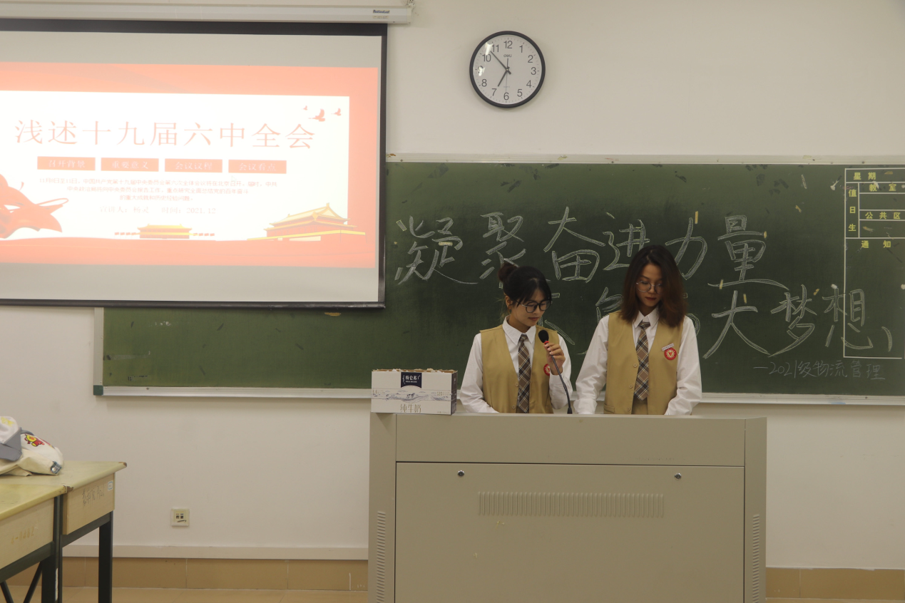 为进一步学习贯彻党的十九届六中全会精神,陈守仁商学院于12月5日晚在文b402召开学习党的十九届六中全会精神主题团日活动,2021级物流管理同学参加活动。
