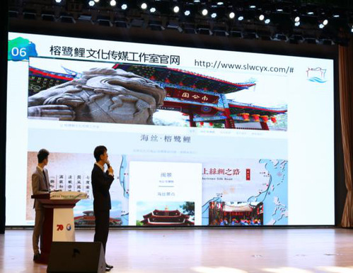 10月21日上午九点,由中共福州市马尾区委、马尾区人民政府、福州市海洋渔业局、共青团福州市委共同主办的“激扬青春•创梦榕台”海洋经济创新创业大赛总决赛在福建省福州市马尾区青少年活动中心顺利闭幕。文学与传播学院吴孟轩老师所带领的“榕鹭鲤文化传媒工作室之锁肤记”团队成员胡珂瑞、邹朵、袁艺等,荣获大会“创意银奖”。
