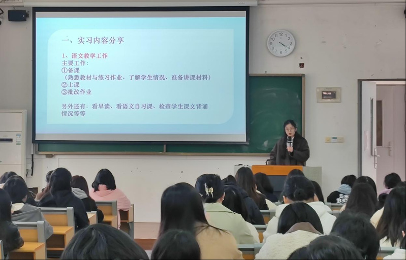 为全面落实师范专业认证与一流专业建设的指标要求,进一步提升学生教学实践能力和综合素质,从而有力支撑教育硕士专业学位授权点培育工作,2月24日下午,2022届汉语言文学专业实习总结暨2022年师范生技能大赛动员会在俊秀东楼102教室举行。此次会议为2018级汉语言文学专业学生为期5个月、持续一学期的实习总结报告,同时就新学期再创师范生技能大赛新成就对同学们进行鼓舞和激励。2018级、2019级汉语言文学专业全体学生参与此次汇报研讨会议。中文系主任王伟、副主任李莉、实习队指导老师郑亚芳、陈琼莲、张丹丹出席此次会议。