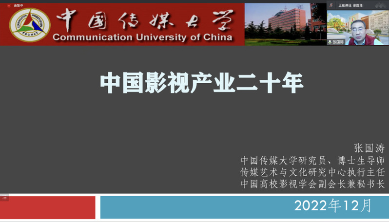 为进一步提高我院广电学生的专业水平,拓展其相关专业知识,12月1日下午,我院邀请了中国传媒大学张国涛教授作题目为《中国影视产业二十年》的线上讲座。本次讲座由新闻传播系主任张灿荣教授主持,广播电视领域老师、全体研究生及部分本科生聆听了本次讲座。