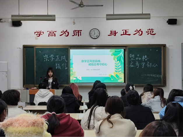 活动中,各班级围绕主题召开了形式多样、内容扎实的学习与研讨。其中,24级广电顺利获得观看诚信考试与考试作弊的真实案例,进一步巩固了同学们对诚信应考重要性的认识;24级中文1班将学风建设与社会开展结合,引导同学们深入思考良好学风对人才培育,国家科研开展的关键意义;24级中文2班则召开知识竞答,促使同学们在互动中强化遵守考纪、坚守初心的自觉。