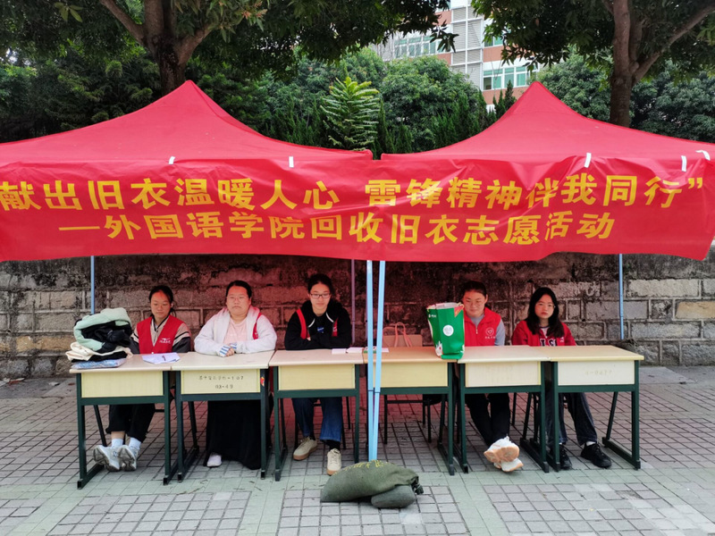 时至今日,雷锋同志的话语仍萦绕在人们耳旁,为纪念雷锋同志、践行志愿精神,外国语学院青年志愿者协会秉持着“帮助他人,服务社会”的精神,“3·5学雷锋纪念日”到来之际于34-35日在三餐校道、C区宿舍1、2、3栋一楼大厅召开了“回收旧衣”活动