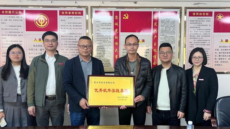3月20日,外国语学院在晋江市展务有限公司举行“优秀校外实践基地”授牌仪式暨专业实践对接会。学院党委书记、副院长、晋江贸促会和晋江市展务有限公司的领导及工作人员,以及商务英语系的师生代表共同参加了仪式和座谈。