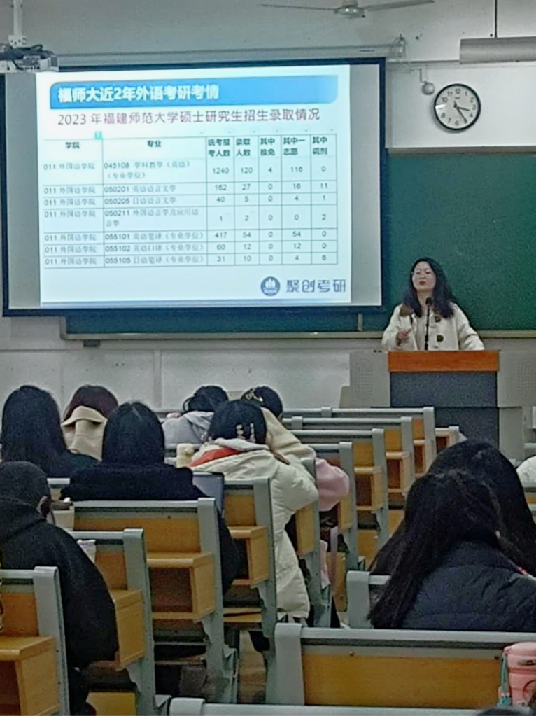 为引导学生明确备考方向、实行备考规划,外国语学院于2024年3月6日和3月8日,邀请聚创教育来校召开考研指导讲座,2021级全体学生参加讲座。