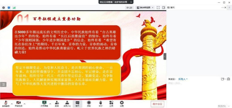 为深入学习贯彻习近平新时代中国特色社会主义思想和党的二十大精神,引导广大团员青年特色宣讲唱响时代新声,我院于2023年2月4日下午在线上召开2022级团支部书记培训学习活动。此次培训由学院团委组织部成员宣讲,全体2022级团支书及团委组织部成员参加。