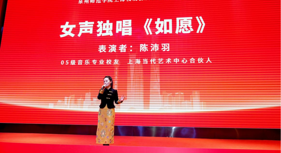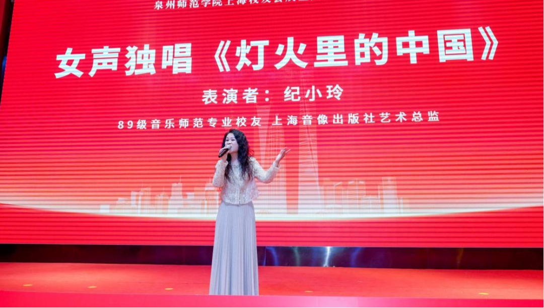 此外,大会现场精彩的校友节目轮番上演,尽显泉师学子的赤子之心与时代风采。校友代表蔡崇达、郭春波、夏铭悦、张玥倾情呈现访谈节目《我与泉师》,娓娓道来他们与母校相伴成长、砥砺奋斗、心怀感恩的动人故事,让在场每一位校友都产生强烈的情感共鸣。校友纪小玲演绎歌曲《灯火里的中国》,陈沛羽带来独唱《如愿》,她们用清澈真挚的歌声,礼赞当下的美好时光,抒发对未来的无限憧憬,更唱出了全体上海校友与母校同心同向、共赴新程的美好心愿。